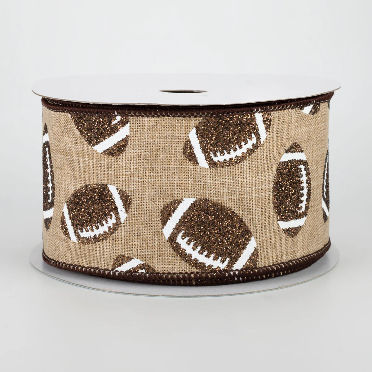 2 1/2" Glitter Football Wired Ribbon: Light Beige - 1 Yard