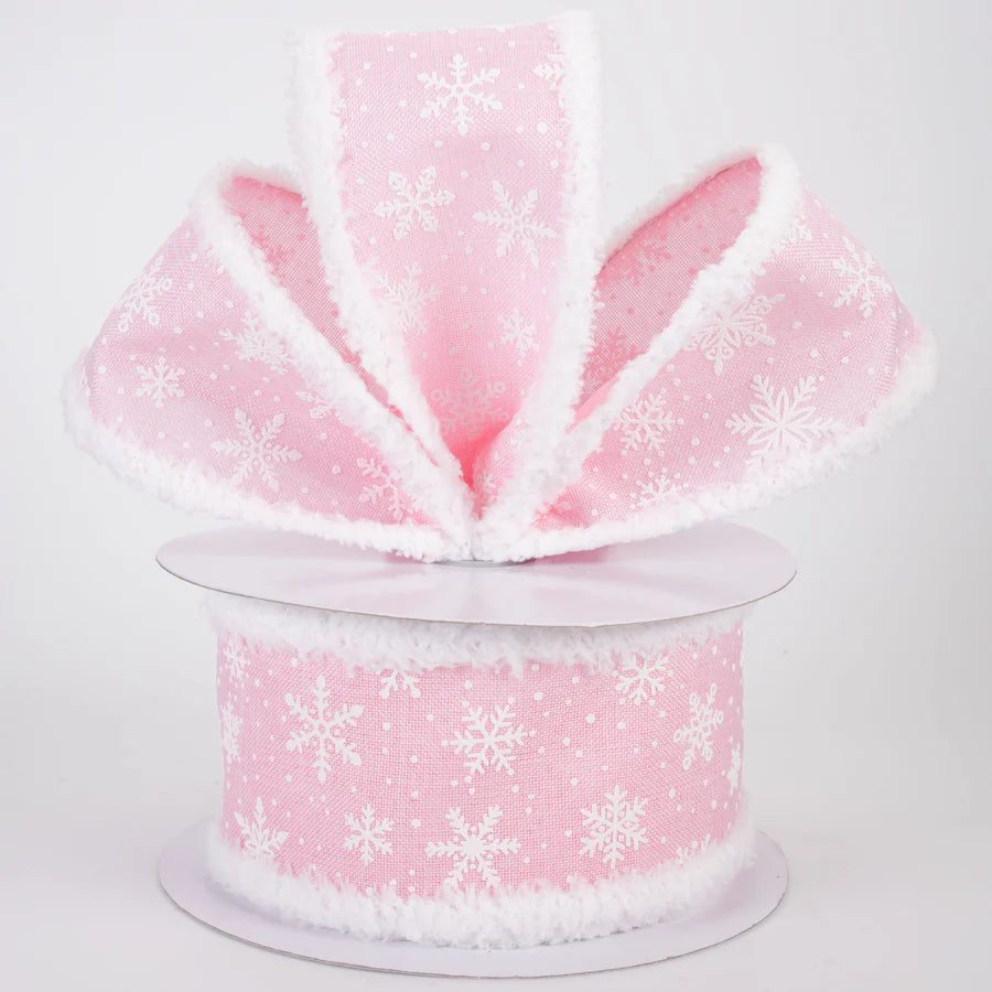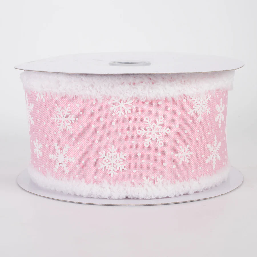 2 1/2" Mini Snowflake Snowdrift Edge Wired Ribbon: Light Pink - 1 Yard
