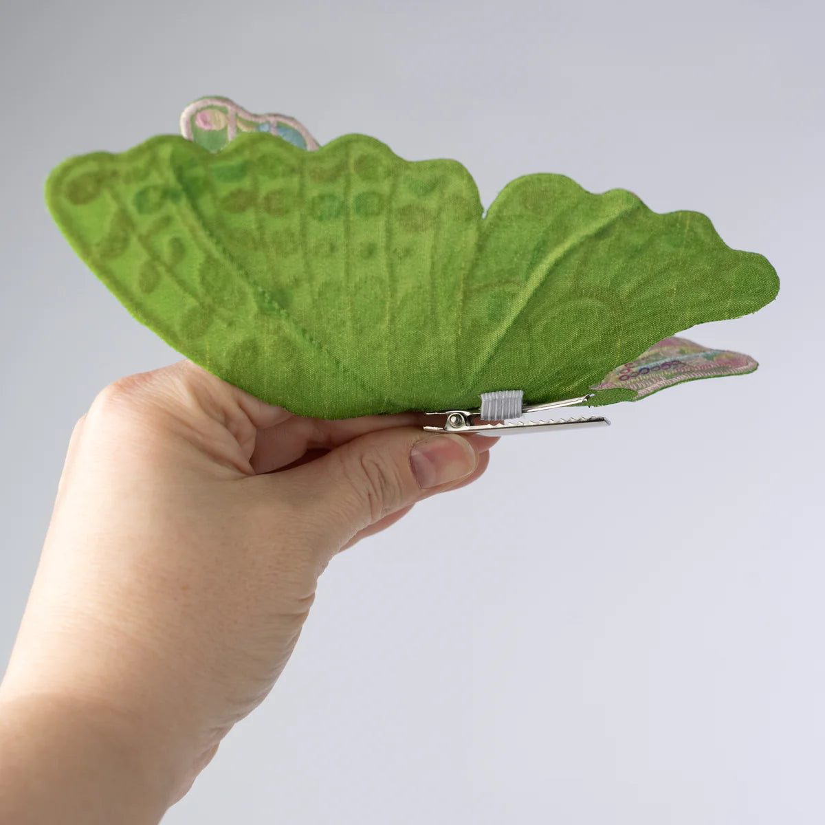 6" Embroidery Butterfly Clip: Pastel Moss Green