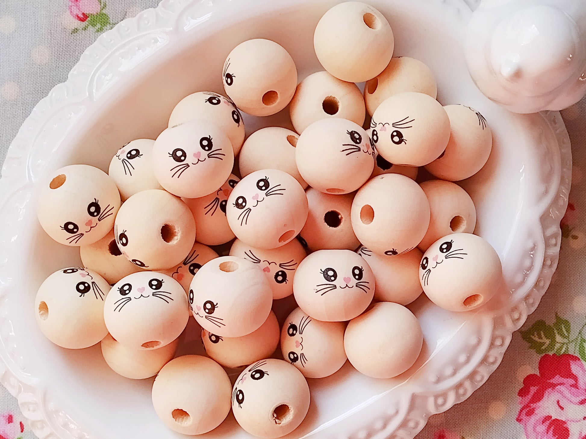 These natural wood beads have a bunny face printed on one side. These beads have a matte finish. They would be perfect for jewelry making, bunny ornaments, doll making and more.