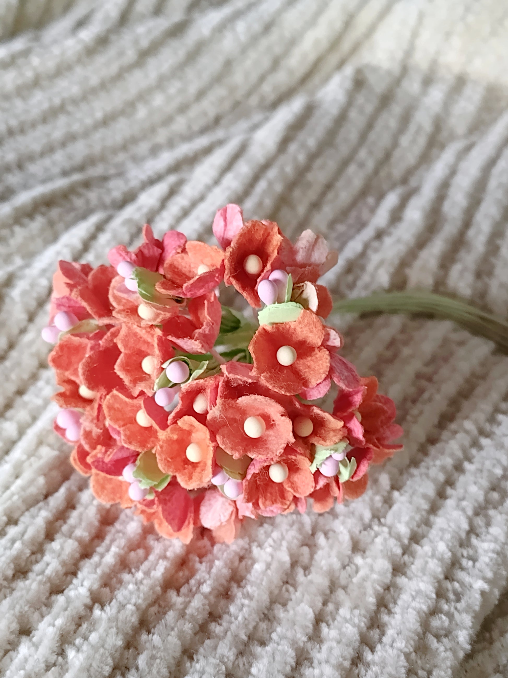 Forget Me Not Vintage Style Millinery Paper Flower Bouquet - Orange - 1 Bouquet