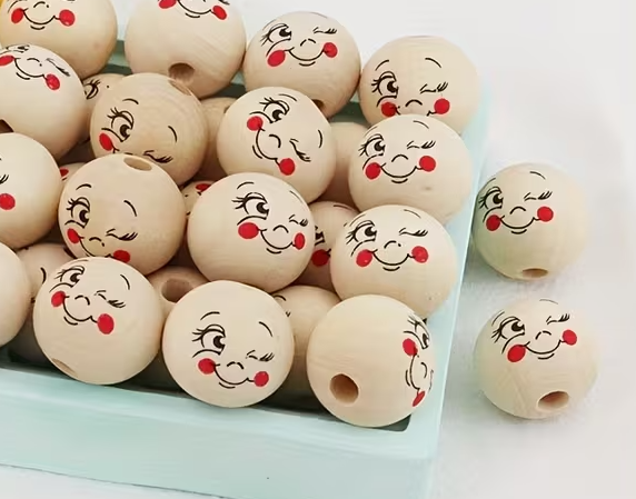These natural wood beads have a happy winking face printed on one side. These beads have a matt finish. They would be perfect for jewelry making, bunny ornaments, doll making and more.