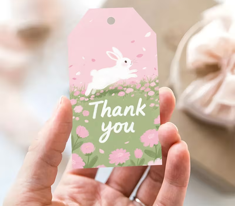 These gift tags are perfect for spring and Easter. They are smooth and have a matte finish with angled corners. Includes string for tying.